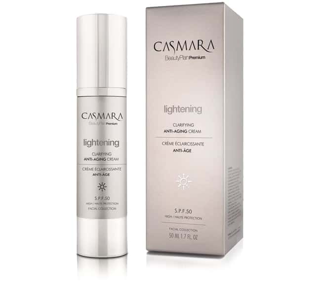 Crema anti- edad aclarante iluminadora con F.P.S. 50, que elimina o suaviza las manchas y evita su aparición; a la vez que combate de un modo global el fotoenvejecimiento y los signos de la edad de un modo tratante y preventivo. Aporta un halo de perfección al rostro desde la primera aplicación.