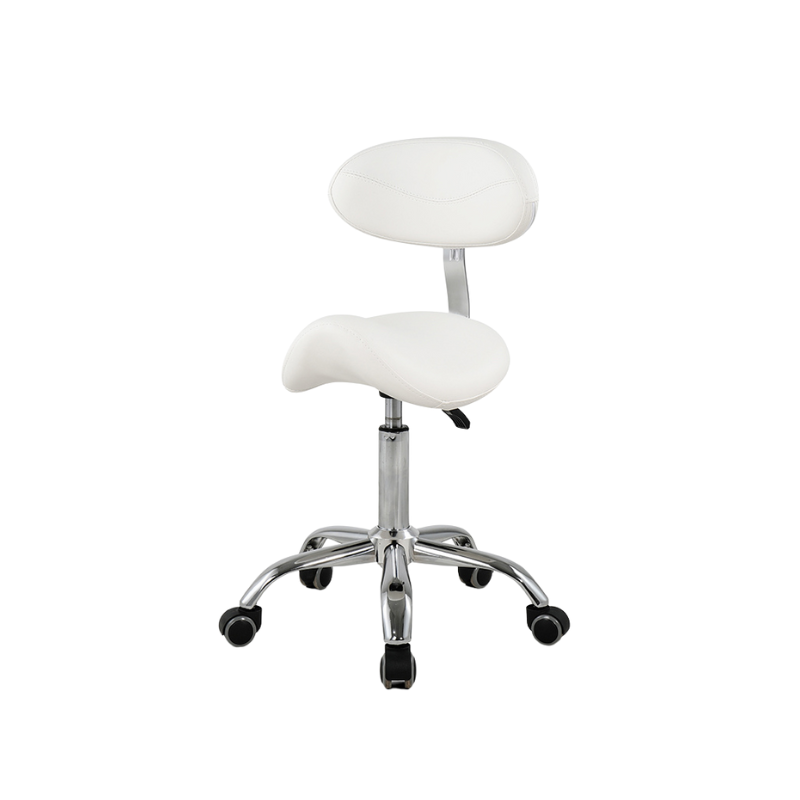 Silla ergonémica para cosmiatria con respaldo. La altura es ajustable con un maximo de 92 cm.