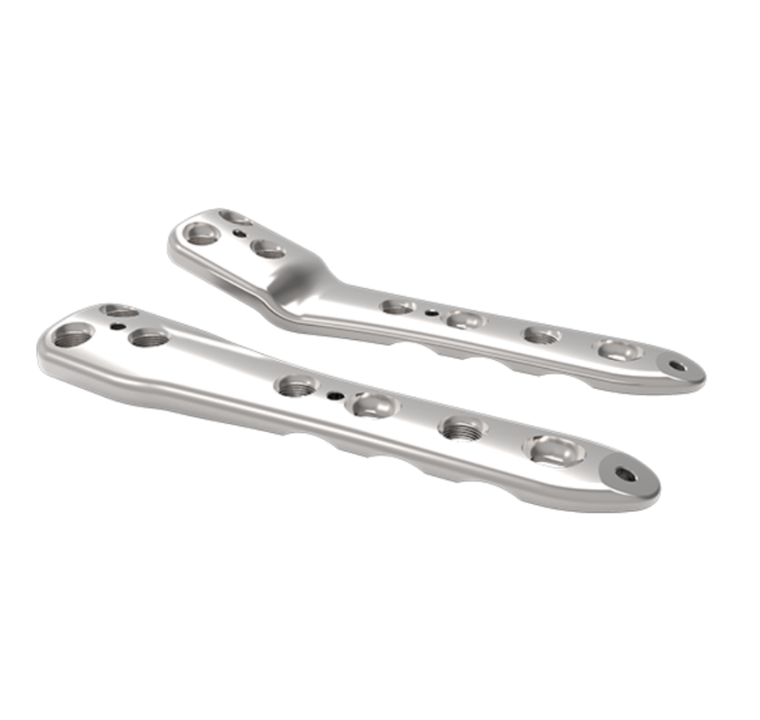 El sistema DFOS incluye implantes para corregir varias afecciones femorales distales, como contracturas en flexión y deformidades en varo/valgo. Las placas desplazadas ayudan a mantener el eje mecánico. El instrumental incluye una guía de clavijas y guías de corte para ayudar a realizar osteotomías más precisas y colocar los implantes.